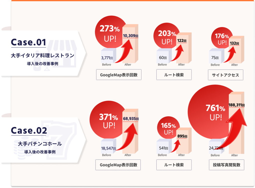 他社より先んじたMEO対策で、検索結果の最適化・集客の改善が期待できます。